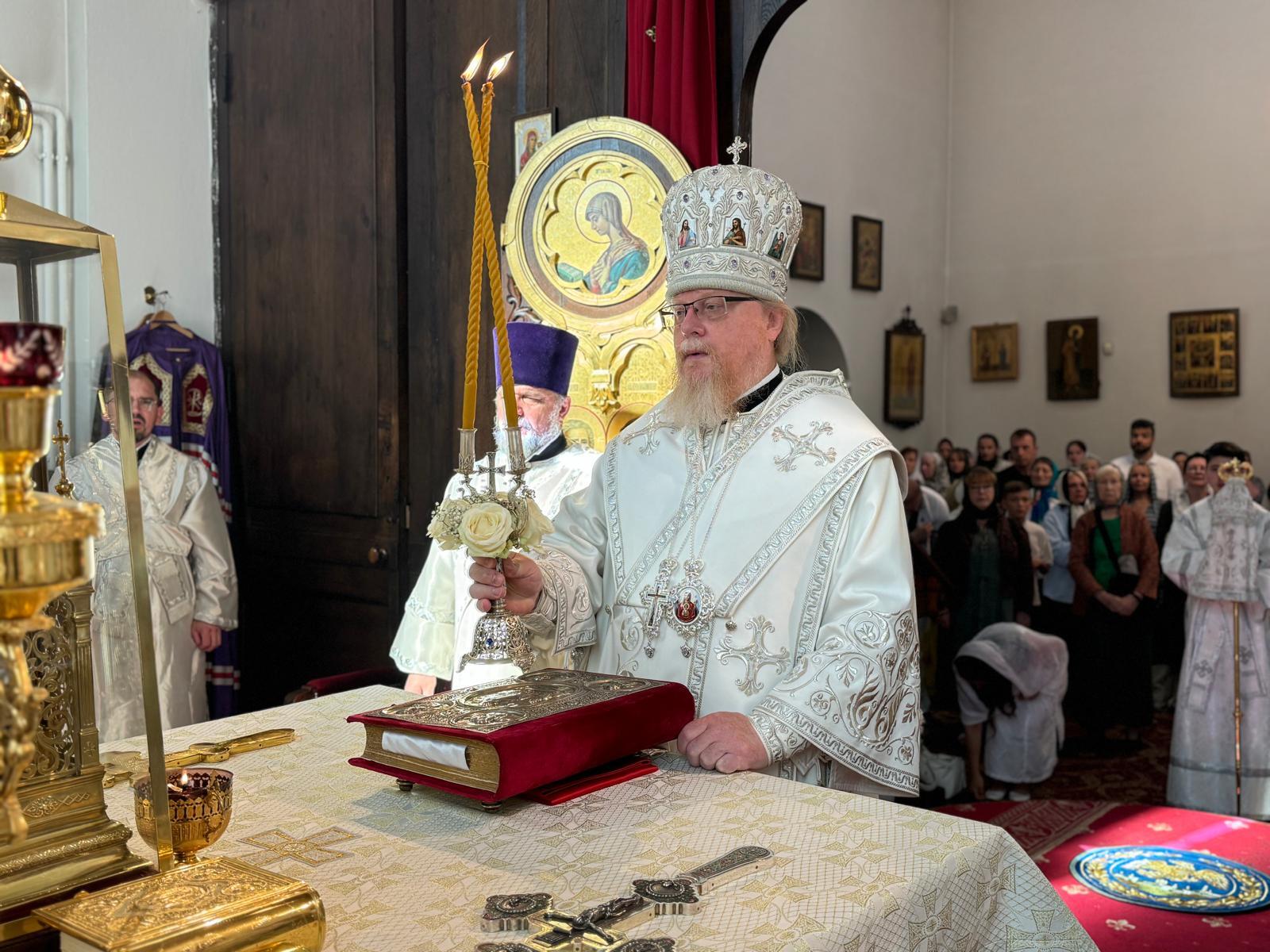 19 августа 2025 года, в праздник Преображения Господа Бога и Спаса нашего Иисуса Христа, архиепископ Рузский Тихон, управляющий Берлинско-Германской епархией, совершил Божественную литургию в кафедральном Воскресенском соборе г. Берлина.