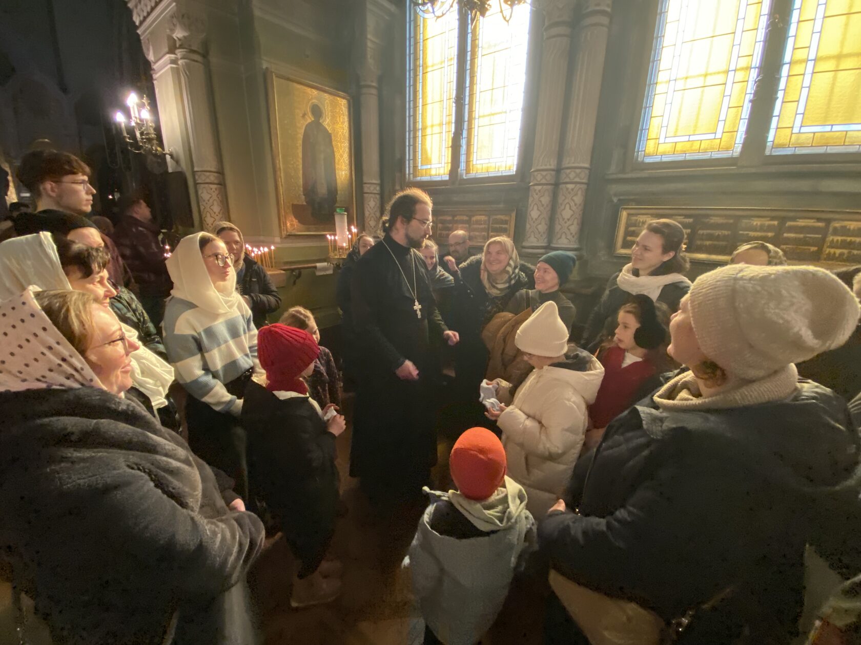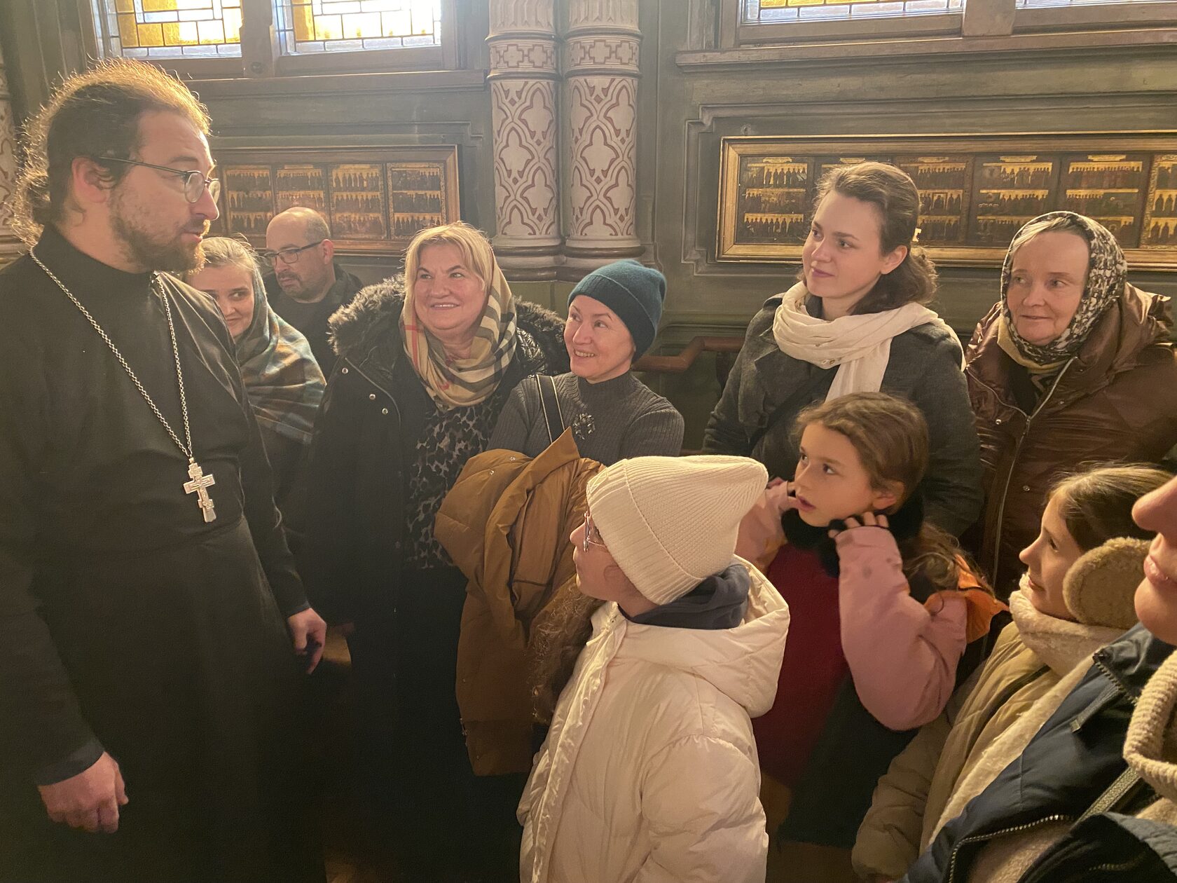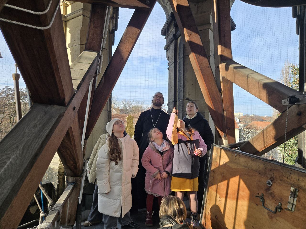 Утро воскресного дня началось с молитвы. Все участники группы молились за Божественной литургией в исторической русской церкви преподобного Симеона Дивногорца. После богослужения настоятель храма, священник Роман Баннак, провёл для гостей содержательную экскурсию, рассказал об истории прихода и особенностях храма. Особой радостью для детей стала возможность подняться на колокольню.