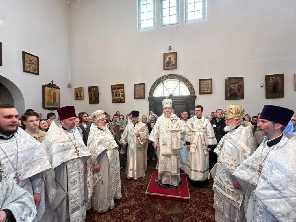 Его Высокопреосвященству сослужили секретарь епархии и ключарь собора протоиерей Михаил Диваков, благочинный Восточного округа протоиерей Георгий Антонюк, протоиерей Илия Чирин, иеромонах Иларион (Резниченко), иерей Максим Юдаков, иерей Никита Приймак (Ганновер) и протодиакон Виталий Садаков.