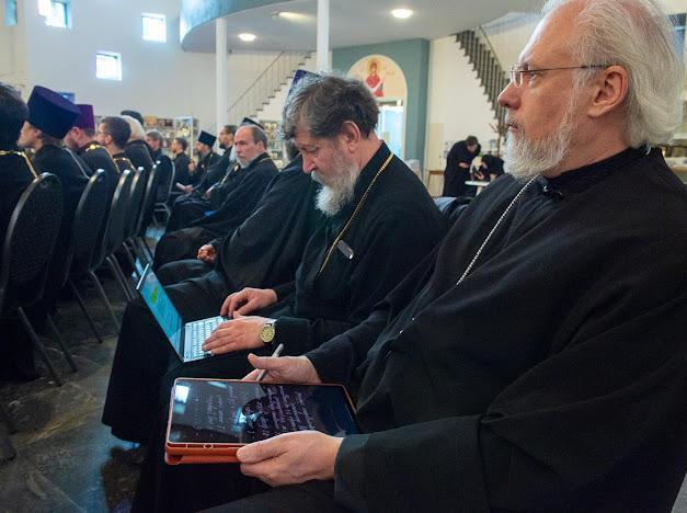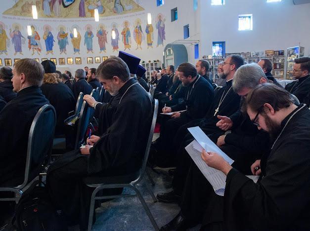 Перед участниками собрания выступили секретарь Епархиального совета игумен Максим (Шмидт) и председатель Епархиального суда протоиерей Михаил Дронов, которые представили отчеты о деятельности Епархиального совета и Епархиального суда. Далее состоялось переизбрание состава Епархиального совета и Епархиального суда.